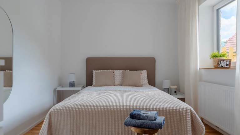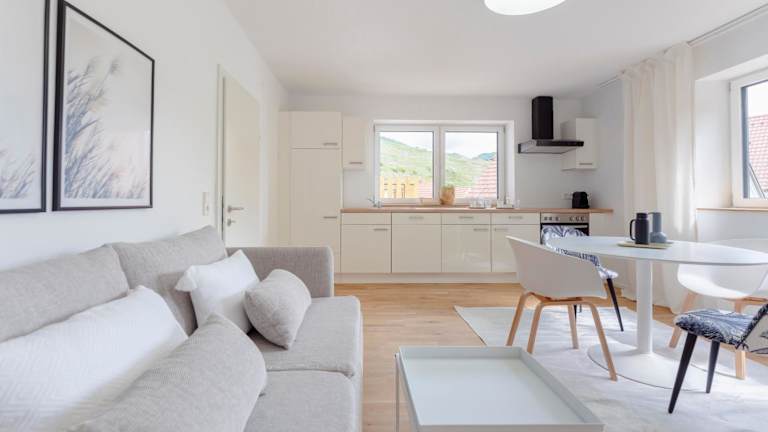 Die Ferienwohnung umfasst ein Schlafzimmer, ein Wohnzimmer, ein Badezimmer mit Dusche sowie eine gut ausgestattete Küche mit Kühlschrank und Geschirrspüler. Eine Terrasse mit Blick auf die Berge sowie Annehmlichkeiten wie kostenloses WLAN, Flachbild-TV, Handtücher und Bettwäsche sind ebenfalls vorhanden.