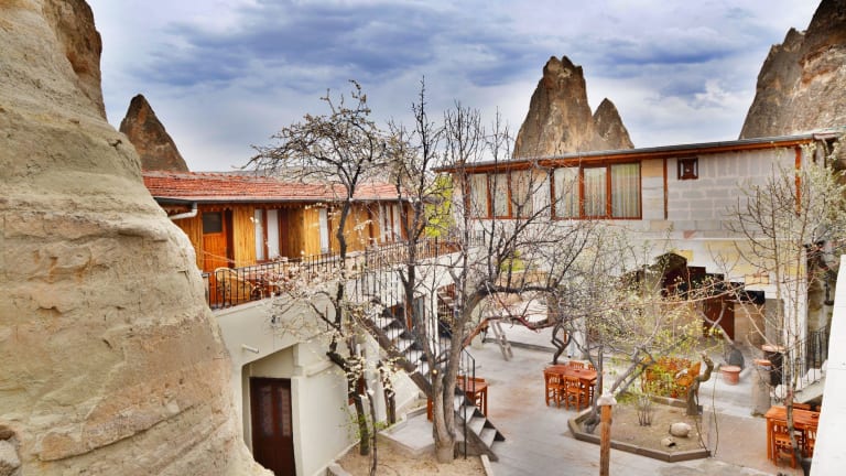 Das Peri Cave Hotel in Nevsehir ist ein charmantes Hotel in den Bergen, das seinen Gästen eine entspannte und einzigartige Erfahrung bietet. Mit einer tollen Lage in der Nähe des Nationalparks Göreme und nur wenige Gehminuten von Karanlık Kilise entfernt, ist dieses Hotel der ideale Ausgangspunkt, um die atemberaubende Natur und die historischen Stätten der Umgebung zu erkunden. Genießen Sie die Annehmlichkeiten wie den Fahrradverleih, die Terrasse und den Garten. Das Hotel bietet zudem kostenloses WLAN, einen Concierge-Service und ein inbegriffenes Frühstücksbuffet.