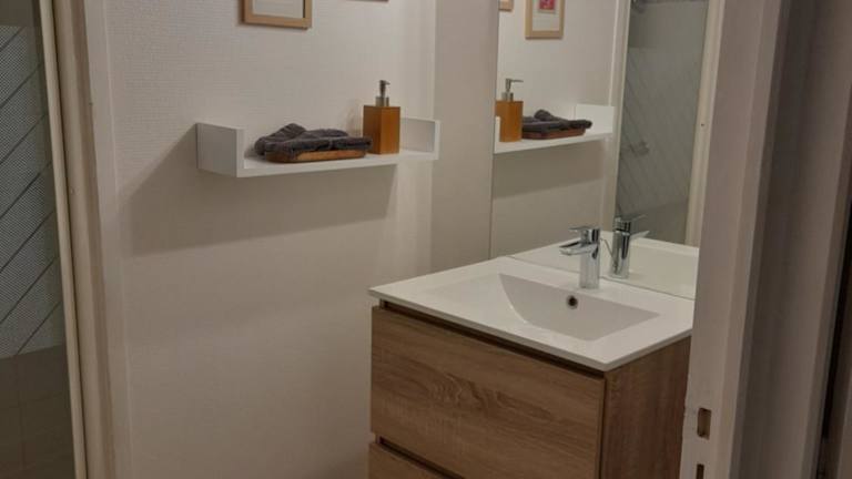 Das Apartment im Perigueux T2 proche du quartier historique verfügt über ein komfortables Schlafzimmer, einen Flachbild-TV und eine gut ausgestattete Küchenzeile mit Kühlschrank und Mikrowelle. Eine Waschmaschine steht ebenfalls zur Verfügung. Das moderne Badezimmer ist mit einer Dusche ausgestattet. Handtücher und Bettwäsche werden gestellt.