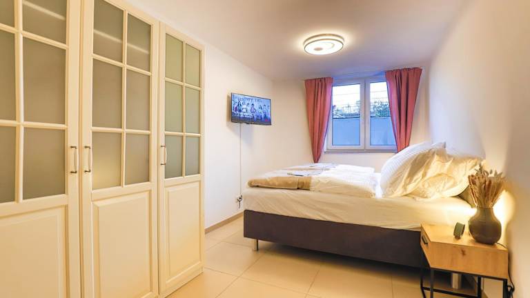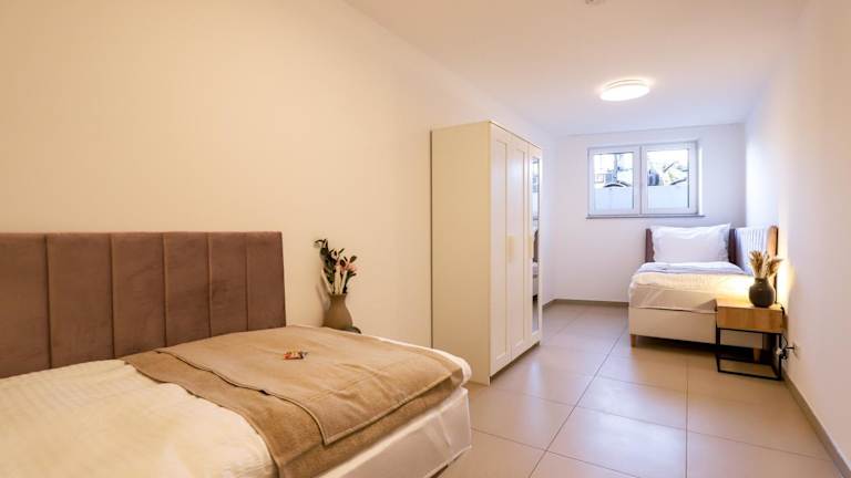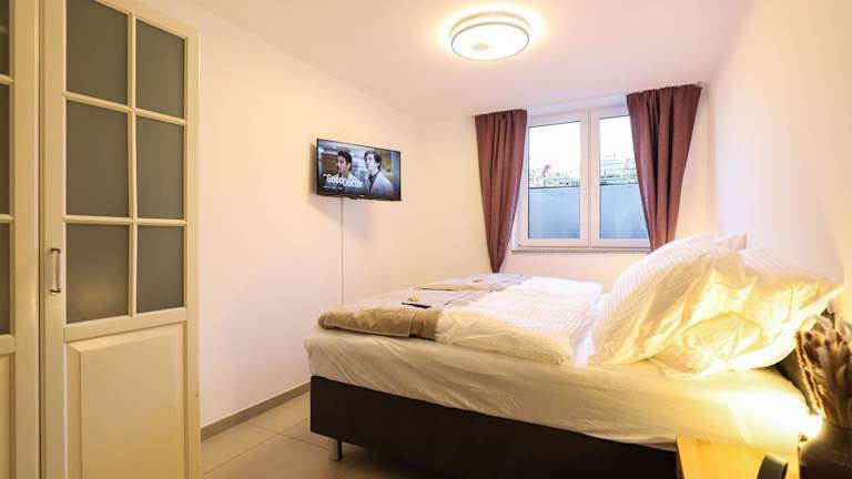 Die Ferienwohnung bietet Platz für bis zu 6 Personen und besteht aus 2 Schlafzimmern und einem Wohnzimmer. Die Ausstattung umfasst eine voll ausgestattete Küche mit Kühlschrank und Kaffeemaschine sowie ein Badezimmer mit Dusche und Haartrockner. Zur weiteren Einrichtung zählen Handtücher, Bettwäsche und ein Smart TV.