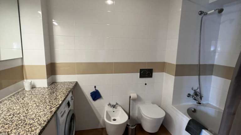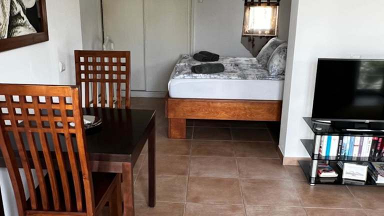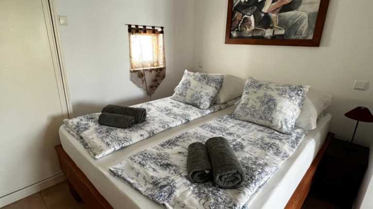 Die Ferienwohnung umfasst ein Schlafzimmer, ein Wohnzimmer und eine voll ausgestattete Küche mit Kühlschrank und Kaffeemaschine. Das Badezimmer ist mit einem Bidet und einer Dusche ausgestattet. Handtücher und Bettwäsche werden bereitgestellt.