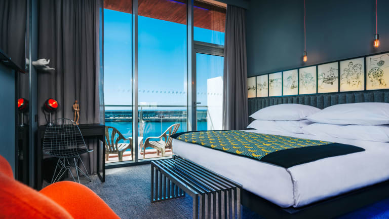 Die stilvollen CR-Zimmer, mit vollem digitalem Zugang, vereinen intuitives und modernes Design mit den besten Materialien und einem sportlichen Hauch. Zwischen Rasenteppich und Kleiderschrank, der an einen Spint erinnert, starten Sie zu einem 100-Meter-Sprint in Rekordzeit auf dem Flur. Bewegungsempfindliche LED-Lampen simulieren eine Landebahn, auf dem Weg zu Ihrer Entspannung.