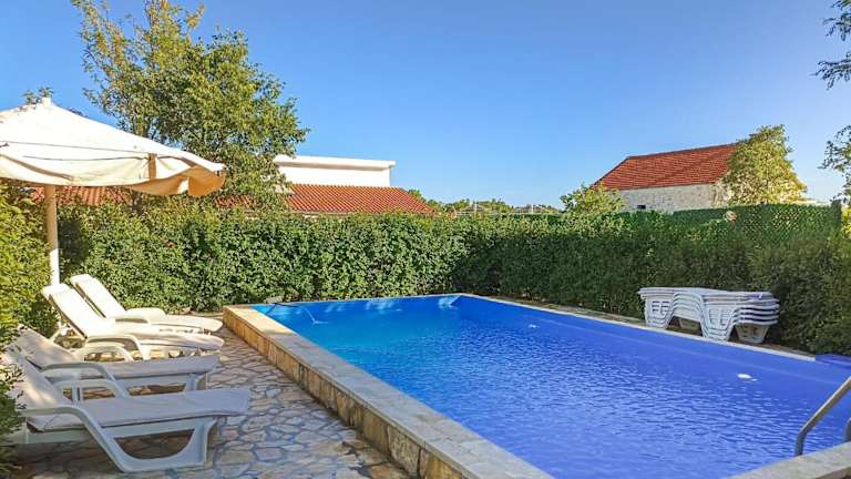 Die Unterkunft besteht aus einem Ferienhaus, das Übernachtungsmöglichkeiten mit eigenem Pool bietet. Die Ausstattung umfasst Klimaanlage, kostenloses WLAN, Parkplatz und Grillmöglichkeiten. Es handelt sich um eine Nichtraucherunterkunft, in der Haustiere willkommen sind. Beachten Sie bitte, dass Junggesellenabschiede oder ähnliche Feiern nicht erlaubt sind und bei der Buchung der gesamte Betrag im Voraus zu entrichten ist.