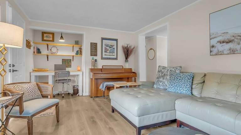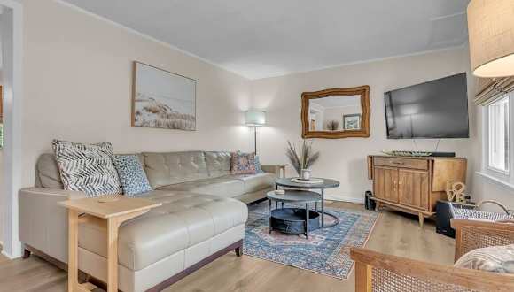 Die Unterkunft 'Pet friendly - steps to water!' bietet eine haustierfreundliche Umgebung und Zugang zu einer Veranda oder Terrasse. Es handelt sich um ein Ferienhaus mit kostenlosem WLAN und einem kostenlosen Privatparkplatz.
