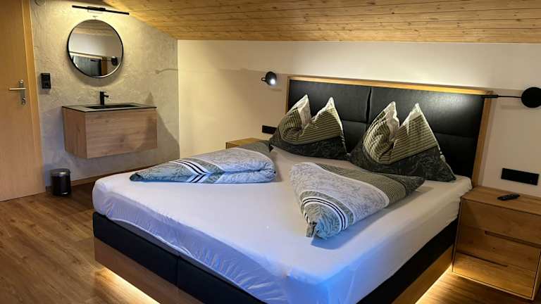Unsere Apartments Ferienwohnung Olperer für 4-5 Personen 2. Stock 65 m2 1 Doppel- und 1 Dreibettzimmer 2 Dusche/WC Küche mit Kaffeemaschine, Geschirrspüler, Herd, Backofen, Mikrowelle, Kühlschrank, Toaster Garderobe Handtücher und Bettwäsche inkludiert free W-Lan Flat TV in den Schlafzimmern Balkon Ferienwohnung Kaserer für 3-5 Personen 1. Stock 53 m2 1 Dreibettzimmer 1 Dusche/WC Küche mit Kaffeemaschine, Geschirrspüler, Herd, Mikrowelle, Kühlschrank, Toaster, Schlafcouch für 2 Personen Garderobe Handtücher und Bettwäsche inkludiert free W-Lan Flat TV im Zimmer und in der Küche Balkon zusätzliches Zimmer (25m2) mit Dusche/WC und LED-TV für 2 Personen gleich gegenüber