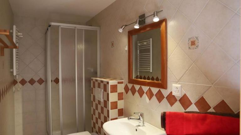 Die Ferienwohnung verfügt über ein Schlafzimmer, einen Fernseher und eine gut ausgestattete Küche mit Kühlschrank und Ofen. Des Weiteren steht ein Badezimmer mit einer Dusche zur Verfügung.