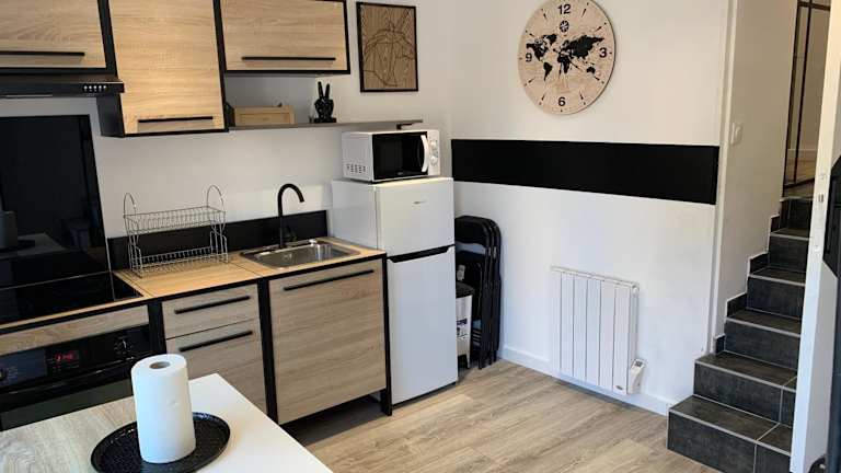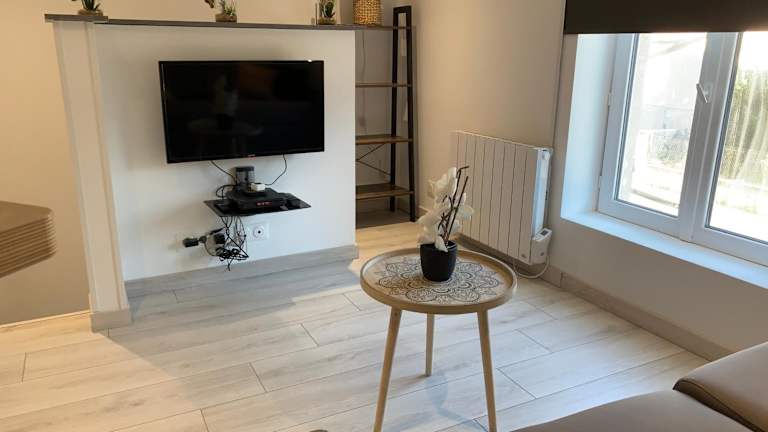 Das Petite maison atypique cocooning bietet ein komfortables und gemütliches Apartment mit einer voll ausgestatteten Küche, einem Schlafzimmer und einem Badezimmer mit Dusche. Die klimatisierte Unterkunft verfügt über einen Flachbild-TV und einen geräumigen Sitzbereich. Hier können Sie sich nach einem aktiven Tag entspannen und erholen.