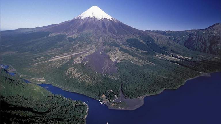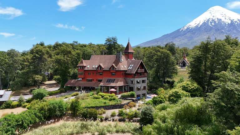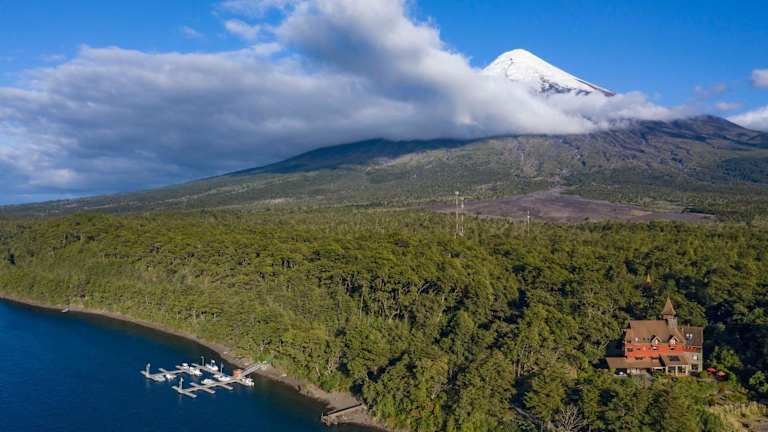Die Petrohue Lodge befindet sich in einer abgelegenen Lage, etwa 60 km von Puerto Varas entfernt. Sie liegt zwischen dem schneebedeckten Vulkan Osorno und den Ufern des Lago Todos los Santos. Die Lodge bietet einen spektakulären Blick auf die patagonische Landschaft und ist ein idealer Ausgangspunkt für Aktivitäten wie Wandern, Canyoning, Rafting und Fliegenfischen. Der Flughafen El Tepual in Puerto Montt ist mit einem Shuttleservice erreichbar, und es steht auch ein Autoverleih zur Verfügung.