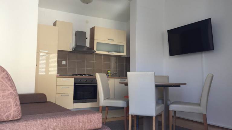 In den Petros Apartments Pag können Sie Mahlzeiten in der voll ausgestatteten Küche zubereiten und genießen. Es gibt auch Restaurants in der Nähe, in denen Sie lokale Spezialitäten probieren können.