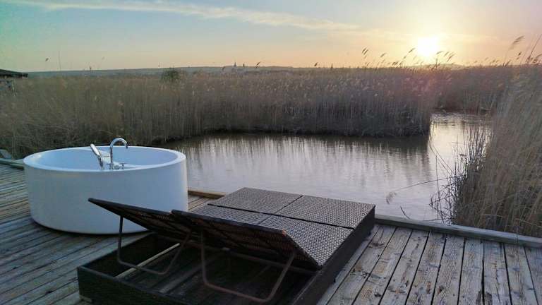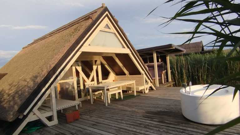 Pfahlbau Sunset II Toplage inklusive Elektroboot bietet einen Stadtblick, einen eigenen Strandbereich, einen Garten und eine Terrasse. Die Unterkunft zeichnet sich durch eine ruhige Lage und direkte Annehmlichkeiten für einen erholsamen Aufenthalt aus. Die Gäste haben Zugang zu einem kostenfreien Privatparkplatz.