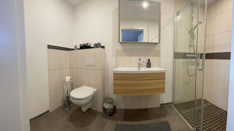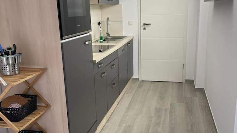 Die Ferienwohnung verfügt über ein Schlafzimmer, eine Küche, die mit einem Kühlschrank und einem Geschirrspüler ausgestattet ist, einen Flachbild-TV, einen Sitzbereich sowie ein Badezimmer mit einer Dusche. Handtücher und Bettwäsche werden bereitgestellt.