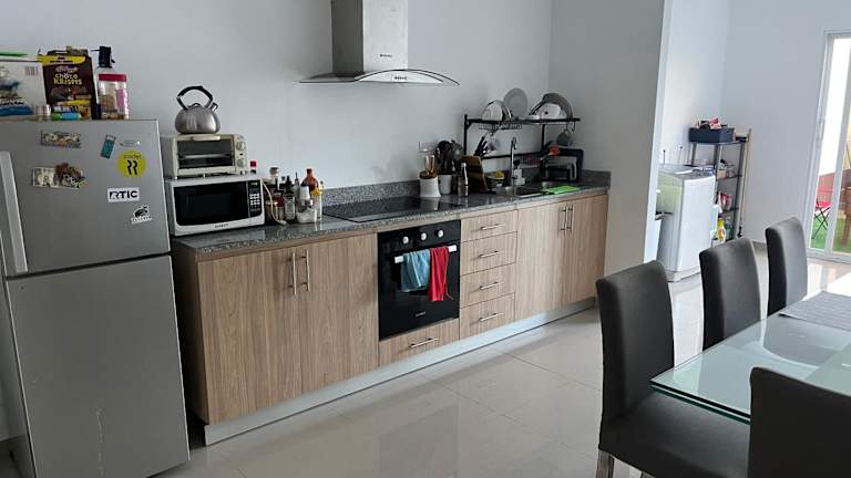 Die Unterkunft verfügt über eine gut ausgestattete Gemeinschaftsküche, die mit einem Kühlschrank, einem Ofen und einer Mikrowelle sowie kostenlosen Pflegeprodukten ausgestattet ist.
