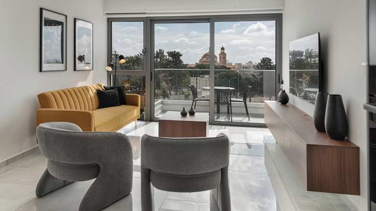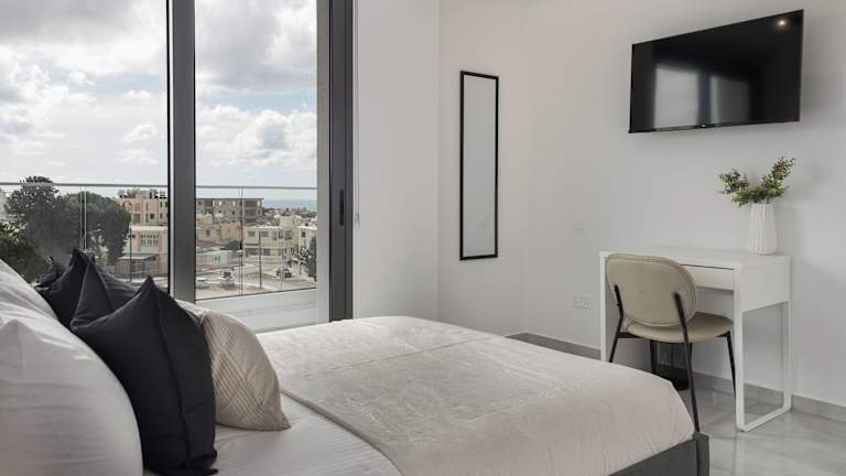 Phaedrus Living Paphos Noir Residence bietet Übernachtungsmöglichkeiten mit Meerblick, kostenlosem WLAN und Privatparkplatz. Die Unterkunft verfügt über einen Balkon und ist eine klimatisierte Ferienwohnung mit zwei Schlafzimmern, einem Wohnzimmer und einer voll ausgestatteten Küche.