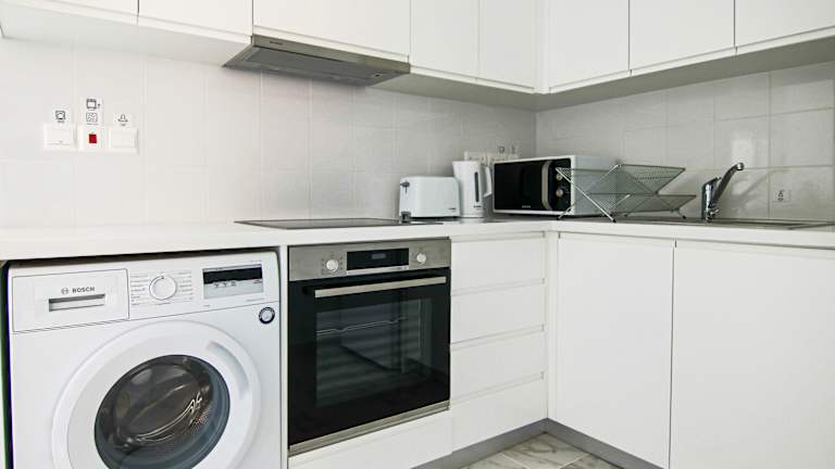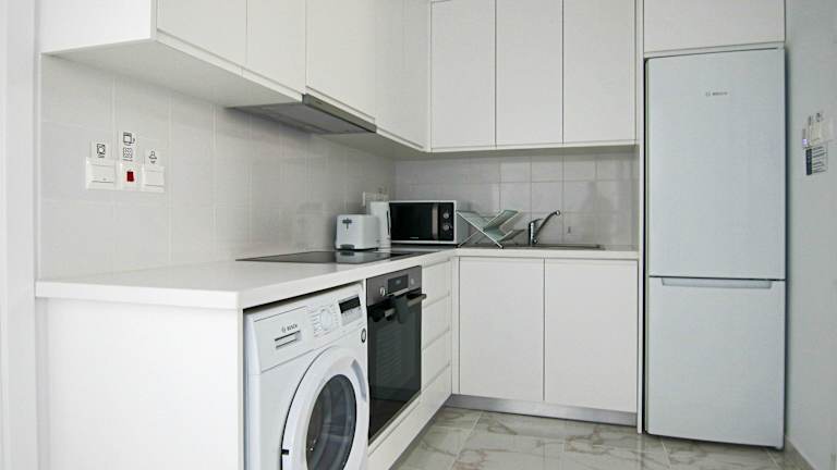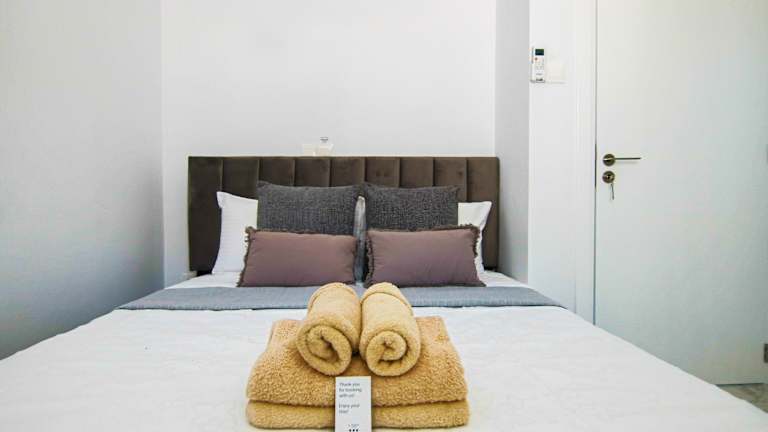 Die Ferienwohnung verfügt über zwei Schlafzimmer, ein Wohnzimmer und eine voll ausgestattete Küche, die mit einem Kühlschrank und einem Wasserkocher ausgestattet ist. Das Badezimmer bietet eine Dusche sowie kostenlose Pflegeprodukte. Handtücher und Bettwäsche werden bereitgestellt.