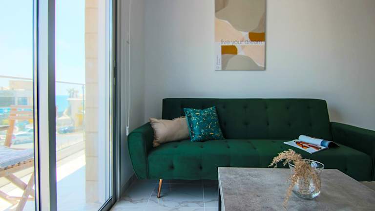 Phaedrus Living Seaside Luxury Flat Athina 21 bietet eine moderne Ferienwohnung mit Stadt- und Meerblick vom eigenen Balkon. Die Unterkunft ist klimatisiert und bietet kostenloses WLAN sowie einen kostenpflichtigen Flughafentransfer.