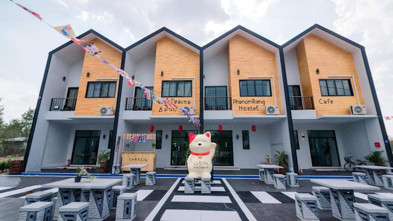 Das Phanomrung Hostel & Linn Chan Cafe พนมรุ้ง โฮส์เทล แอนด์ ลิณณ์จัง คาเฟ่ befindet sich in Buriram und bietet eine günstige Lage für Reisende, die die Stadt und ihre Umgebung erkunden möchten. Das Hostel liegt in der Nähe des Chang International Circuit und ist nur eine kurze Fahrt vom Flughafen Buri Ram entfernt. Die Umgebung bietet auch viele Möglichkeiten für Outdoor-Aktivitäten wie Radfahren.