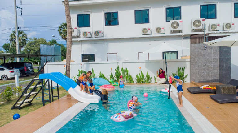 Das Phanomrung Hostel & Linn Chan Cafe พนมรุ้ง โฮส์เทล แอนด์ ลิณณ์จัง คาเฟ่ in Buriram ist eine ideale Unterkunft für Reisende, die eine einladende Atmosphäre und eine Vielzahl von Annehmlichkeiten suchen. Das Hostel bietet kostenlose Fahrräder, einen Garten, eine Gemeinschaftslounge und eine Terrasse. Die Gäste können im hoteleigenen Restaurant thailändische und lokale Gerichte genießen oder an der Bar einen Cocktail trinken. Die klimatisierten Zimmer verfügen über einen Flachbild-TV und einige Zimmer haben einen Balkon. Bettwäsche und Handtücher werden gestellt. Jeden Morgen wird ein amerikanisches oder asiatisches Frühstück angeboten. Gäste können Aktivitäten wie Radfahren in und um Buriram genießen. Das Personal spricht Englisch und Thai und steht den Gästen an der 24-Stunden-Rezeption für praktische Ratschläge zur Verfügung. Das Phanomrung Hostel & Linn Chan Cafe พนมรุ้ง โฮส์เทล แอนด์ ลิณณ์จัง คาเฟ่ liegt 48 km von der Rennstrecke Chang International Circuit entfernt. Der nächstgelegene Flughafen ist der Flughafen Buri Ram, der 83 km vom Hostel entfernt liegt.