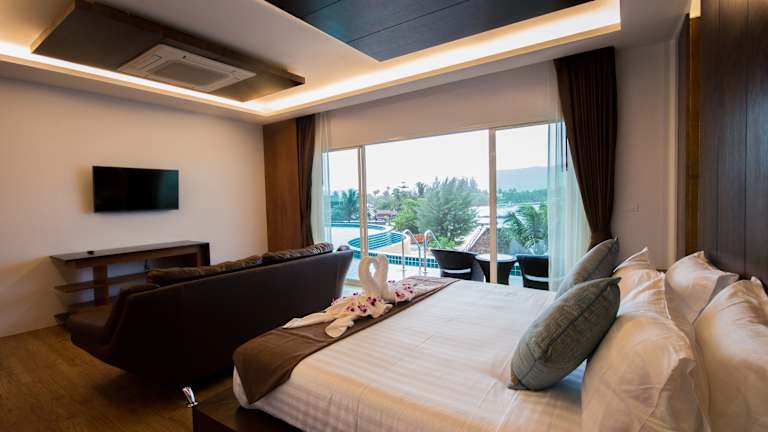 Die Zimmer sind mit einer Klimaanlage, einem Badezimmer, einer kleinen Küche und einem Balkon oder einer Terrasse ausgestattet. Einige Unterkünfte bieten Zugang zum Pool. Zu den Annehmlichkeiten zählen ein Doppelbett, Hausschuhe, ein Safe, eine Minibar, ein Kühlschrank, ein Telefon, ein Fernseher und kostenfreies WLAN. Das Badezimmer ist mit einer Dusche und kostenfreien Pflegeprodukten ausgestattet.