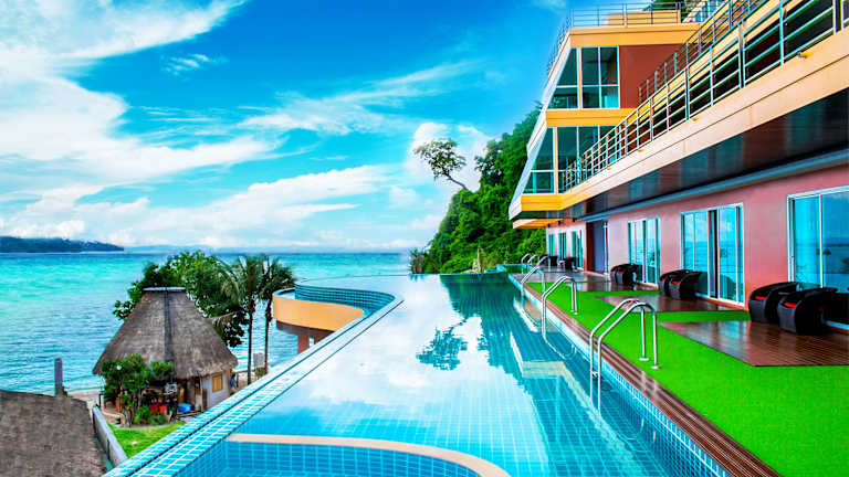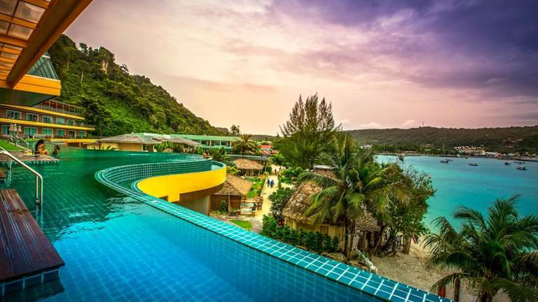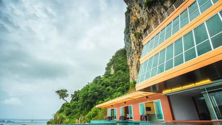 Das Phi Phi Cliff Beach Resort befindet sich auf der Insel Ko Phi Phi Don, etwa 600 m entfernt von der Bucht Tonsai Bay. Der Tonsai Pier liegt 700 m entfernt, während die Bucht Loh Dalum Bay in etwa 12 Gehminuten erreicht werden kann. Der Strand Loh Moo Dee Beach ist 2,6 km und die Bucht Runtee Bay 2,7 km vom Hotel entfernt.