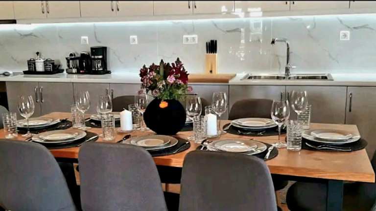 Die Villa umfasst 4 Schlafzimmer, ein Wohnzimmer und eine voll ausgestattete Küche mit Kühlschrank und Kaffeemaschine. Zudem stehen 3 Badezimmer mit Bidet und Dusche zur Verfügung.