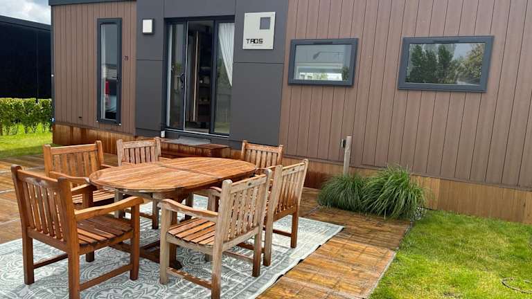 Phitina's tiny house jabbeke - Oostende - Brugge bietet Übernachtungsmöglichkeiten in einem Ferienhaus. Die Unterkunft verfügt über einen saisonalen Außenpool, einen Garten und ein Restaurant sowie über kostenloses WLAN. Zudem gibt es einen kostenlosen Privatparkplatz.