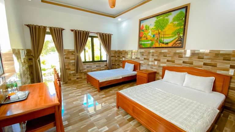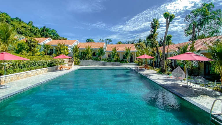 Der Bungalow liegt in einer ruhigen Umgebung und bietet eine schöne Aussicht auf die Berge. In der Nähe gibt es beliebte Sehenswürdigkeiten wie die Pagode Sung Hung und Vinpearl Land Phu Quoc. Der internationale Flughafen Phu Quoc ist nur 1 km entfernt.