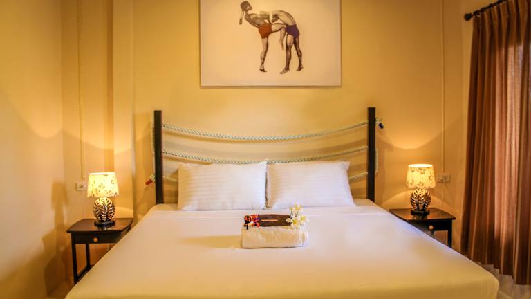 Das Phuket Muay Thai House ist eine Bungalowanlage mit 26 Zimmern und diversen Annehmlichkeiten. Die Unterkunft bietet eine Rezeption, Wäscheservice, Münzwäscherei, Zimmerservice, eine Gartenanlage sowie einen Swimmingpool und eine angenehme Sonnenterrasse. WLAN ist in den öffentlichen Bereichen kostenfrei. Parkmöglichkeiten sind vorhanden.
