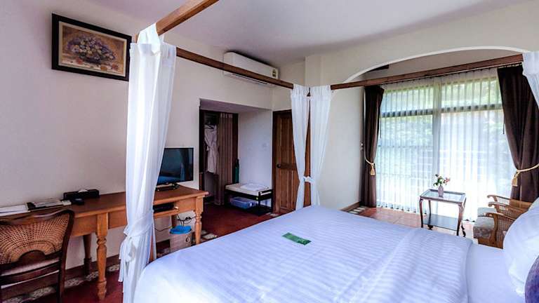 Die klimatisierten Zimmer sind mit einem Kühlschrank und einem Flachbild-Sat-TV ausgestattet. Jedes Zimmer bietet einen Blick auf den Garten und ein eigenes Bad mit einer Regendusche. Zusätzlich wird ein Wäsche- und Bügelservice angeboten.