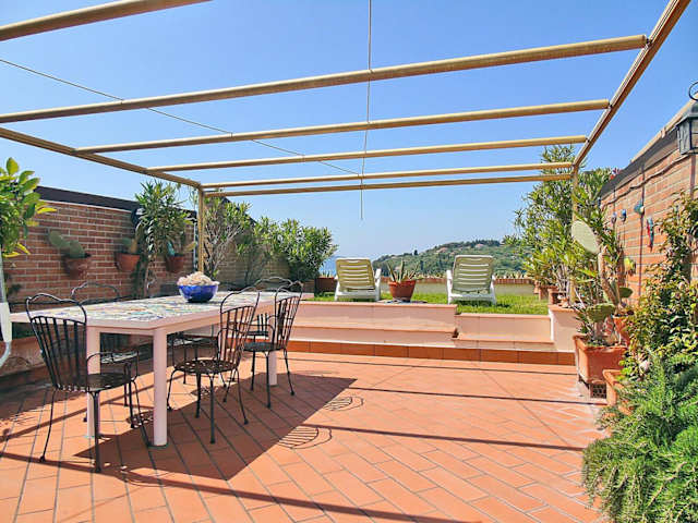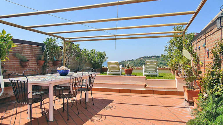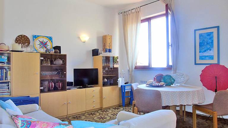 Die Ferienwohnung besteht aus 2 Schlafzimmern, einem Wohnzimmer, einer gut ausgestatteten Küche sowie einem Badezimmer, das mit einem Bidet und einer Dusche ausgestattet ist. Zur weiteren Ausstattung gehören ein Satelliten-Flachbild-TV, eine Terrasse und Meerblick. Handtücher und Bettwäsche stehen den Gästen ebenfalls zur Verfügung.