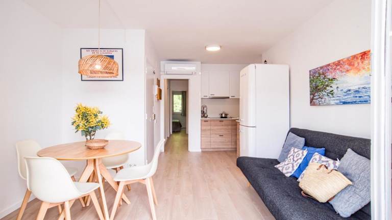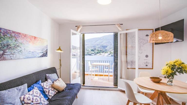 Genießen Sie Ihren Aufenthalt im Hotel Pianc in Cadaqués, das direkt an der Strandpromenade liegt und nur einen kurzen Spaziergang vom Strand entfernt ist. Das Apartment bietet eine private Süd-Terrasse mit herrlichem Meerblick und ist ideal für einen entspannten Urlaub. Die Unterkunft verfügt über einen gemütlichen Wohnbereich mit TV, Sofa und Esstisch sowie eine gut ausgestattete Küchenzeile. Das Apartment ist klimatisiert und beheizt. Es gibt ein Doppelzimmer und ein Zimmer mit Etagenbett, sowie ein eigenes Badezimmer mit Dusche. Handtücher und Bettwäsche werden gestellt. Die Altstadt von Cadaqués und das Salvador Dalì Museum sind nur einen kurzen Spaziergang oder eine kurze Fahrt entfernt. Das Naturschutzgebiet Cap de Creus erreichen Sie in nur 3 km Entfernung vom Apartment.