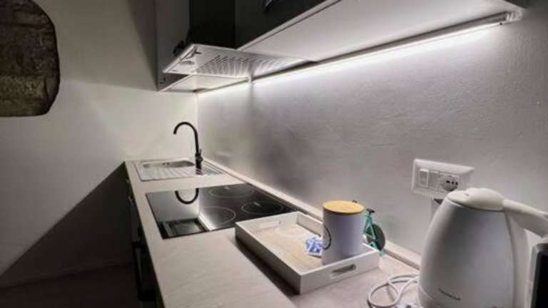 Die Ferienwohnung umfasst ein Schlafzimmer, ein Wohnzimmer sowie eine voll ausgestattete Küche. Zur Ausstattung gehören ein Kühlschrank und ein Wasserkocher. Zudem stehen ein Badezimmer mit Bidet und Dusche zur Verfügung. Handtücher und Bettwäsche werden bereitgestellt.