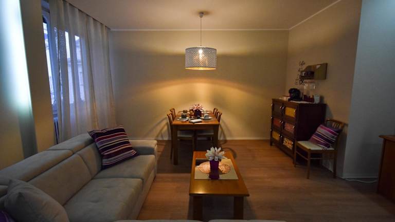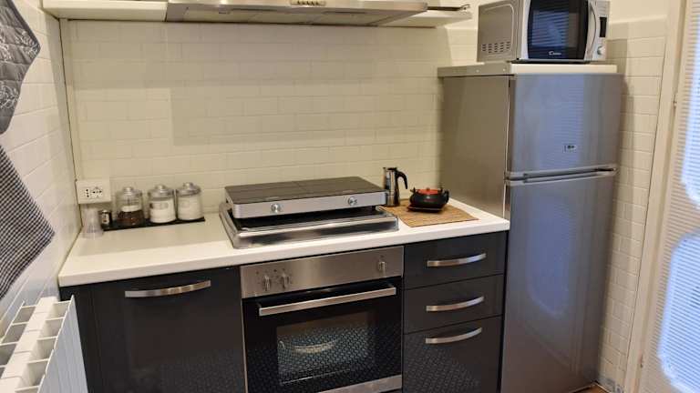 Die Ferienwohnung umfasst ein Schlafzimmer, ein Wohnzimmer, eine voll ausgestattete Küche mit Kühlschrank und Kaffeemaschine sowie ein Badezimmer mit Badewanne und Haartrockner. Handtücher und Bettwäsche werden bereitgestellt.