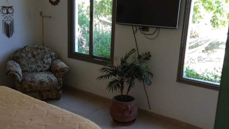 Das klimatisierte Ferienhaus im Piccolina, casa en las sierras de Cba verfügt über ein gemütliches Schlafzimmer, ein geräumiges Wohnzimmer und eine voll ausgestattete Küche mit Kühlschrank und Wasserkocher. Das Badezimmer ist mit einem Bidet und einer Dusche ausgestattet. Handtücher und Bettwäsche werden gestellt.