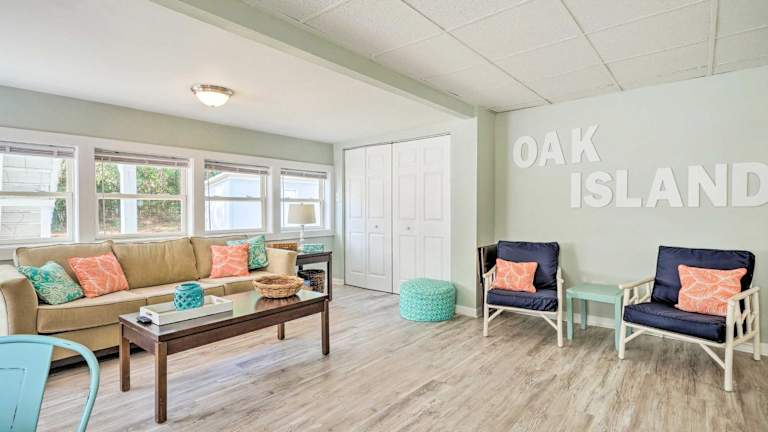 Die Lage des Ferienhauses bietet Ihnen eine Fülle von Sport- und Freizeitmöglichkeiten. Genießen Sie entspannte Spaziergänge entlang des Strandes, schwimmen Sie im Meer oder erkunden Sie die Umgebung mit dem Fahrrad. Oak Island bietet auch verschiedene Wassersportarten wie Surfen, Kajakfahren und Angeln. Freuen Sie sich auf einen aktiven und unterhaltsamen Aufenthalt in dieser malerischen Umgebung.