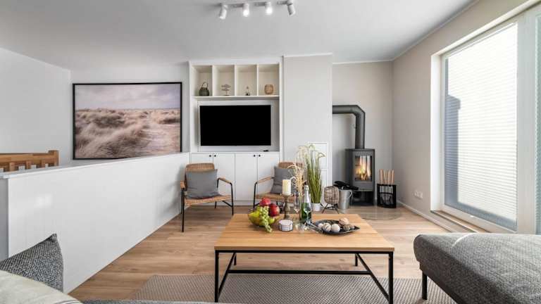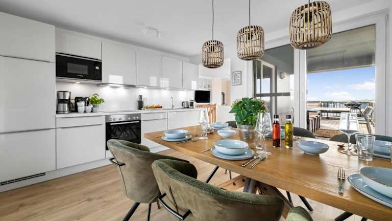 Die Ferienwohnung umfasst drei Schlafzimmer, ein Wohnzimmer und eine voll ausgestattete Küche. Die Ausstattung beinhaltet einen Kühlschrank, einen Geschirrspüler, einen Fernseher und einen CD-Player.