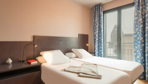 Das Hotel verfügt über 50 Apartments, die sich über 5 Etagen erstrecken und bequem mit dem Aufzug erreichbar sind. Die Rezeption ist rund um die Uhr besetzt und es stehen verschiedene Einrichtungen wie eine Gepäckaufbewahrung, ein Safe, ein TV-Raum und ein Spielzimmer zur Verfügung. WLAN ist im gesamten Hotel kostenlos verfügbar. Die Apartments sind beheizt und verfügen über eine gut ausgestattete Kochnische, einen Balkon oder eine Terrasse und ein eigenes Badezimmer. Einige Apartments bieten auch einen Safe.