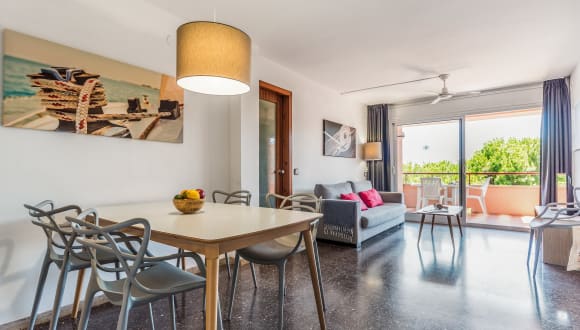Die Wohnanlage befindet sich an der Costa Dorada in Coma-Ruga, einem kleinen Küstenort, der für seinen riesigen weißen Sandstrand bekannt ist, der mit der "blauen Flagge", der internationalen Umweltauszeichnung für den Schutz der Meeresumwelt, ausgezeichnet wurde. Die Residenz liegt direkt am Strand und besteht aus 10 kleinen 3-stöckigen Gebäuden ohne Aufzug. Alle 71 voll ausgestatteten Wohnungen verfügen über eine Terrasse und die Wohnungen im Erdgeschoss haben einen kleinen Garten. Die Residenz ist von Grünflächen umgeben und verfügt über einen Außenpool. Der Strand befindet sich gegenüber der Residenz und ist zu Fuß erreichbar. Für einen aktiven Urlaub stehen Ihnen in der Nähe zahlreiche Aktivitäten zur Verfügung: ein Reitzentrum in Torredembarra, ein Segelclub am Strand, Tennisplätze, ein Sportzentrum und vieles mehr.