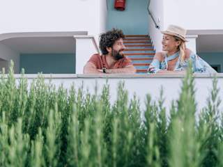 KOMFORTZIMMER: Einzelraum mit Bad, mit 2 Betten SUITE: zwei Räume und Bad (Eingang/Wohnzimmer mit Schlafcouch und Schlafzimmer mit Doppelbett) für 2 bis 4 Personen. SUITE DELUXE: zwei Räume mit 2 Bädern (Eingang/Wohnzimmer mit Schlafcouch und Schlafzimmer mit Doppelbett) für 3 bis 4 Personen. SUITE DELUXE MIT MEERBLICK : (mit Aufpreis auf den Deluxe-Suite-Tarif) Zwei Räume, Eingangs-/Wohnzimmer mit Schlafsofa, Schlafzimmer mit Doppelbett und zwei Bäder, Balkon mit frontalem Meerblick, 3 bis 4 Betten