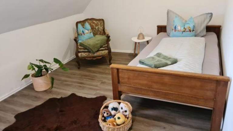 Die Ferienwohnung besteht aus drei Schlafzimmern, einem Badezimmer mit Dusche und Haartrockner sowie einem Wohnzimmer. Eine voll ausgestattete Küche ist vorhanden, die mit einem Kühlschrank und einer Kaffeemaschine ausgestattet ist. Handtücher und Bettwäsche werden zur Verfügung gestellt.