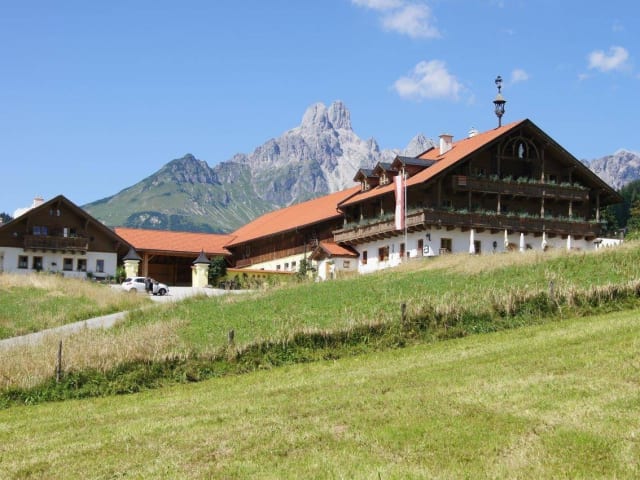 Erleben Sie einen aktiven Bauernhofurlaub im Hotel Appartement Pilzhof in Filzmoos, Salzburg. Mit Ponyreiten, Pferdeschlittenfahrten und einer hauseigenen Sauna bietet der Pilzhof Spaß für die ganze Familie. Genießen Sie die beeindruckende Berglandschaft und die Nähe zum großen Skigebiet von Filzmoos. Mit kostenlosen WLAN und voll ausgestatteten Apartments mit Massivholzmöbeln und einer Küchenzeile ist der Pilzhof eine ideale Wahl für Ihren Aufenthalt. Das hauseigene Restaurant serviert regionale und traditionelle Speisen, und Supermärkte sind nur einen kurzen Spaziergang entfernt. Kinder können sich im Spielzimmer und auf dem Spielplatz austoben, während die Eltern im Garten oder auf der Sonnenterrasse entspannen können. Im Winter bieten sich Langlaufloipen direkt vor der Tür und das Skifahren in der großen Wintersportregion Filzmoos Ski Amadé an. Im Sommer können Sie die unmittelbare Umgebung zum Mountainbiken und Wandern nutzen.