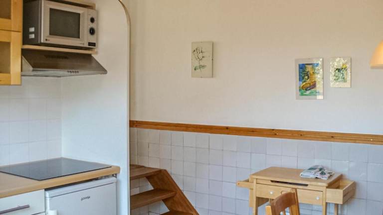 Die Wohnung bietet ein Schlafzimmer, eine gut ausgestattete Küche mit Kühlschrank und Mikrowelle, ein Wohnzimmer sowie einen TV. Die Unterkunft ist rauchfrei und verfügt über Gartenmöbel.