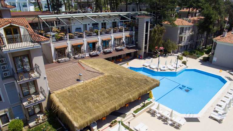 Das Hotel befindet sich in Fethiye, nur etwa 6 km vom klaren türkisfarbenen Wasser des Strandes von Ölüdeniz entfernt. In der näheren Umgebung, ca. 500 m vom Hotel, finden die Gäste Restaurants, Geschäfte und öffentliche Verkehrsanbindungen. Der Flughafen Dalaman liegt in einer Distanz von ungefähr 60 km.