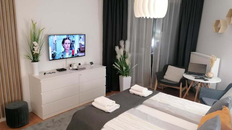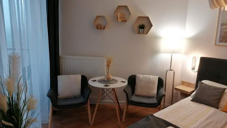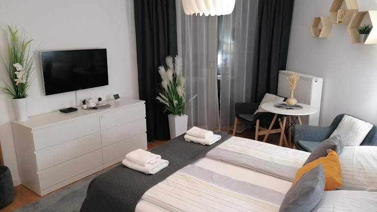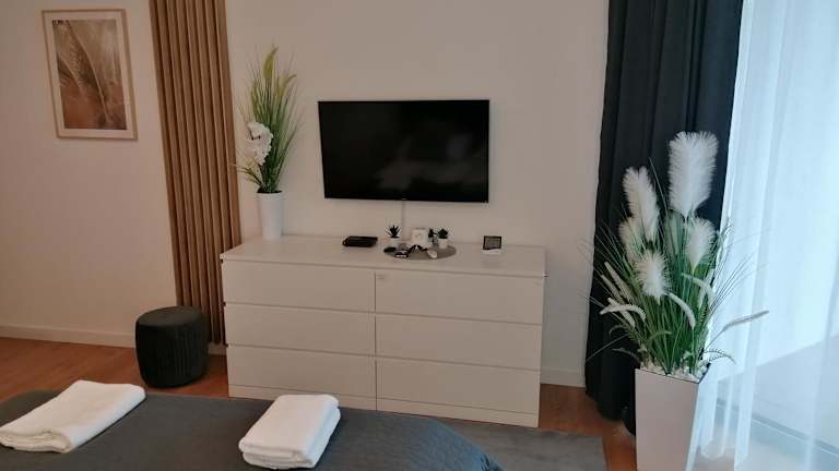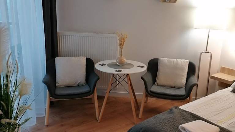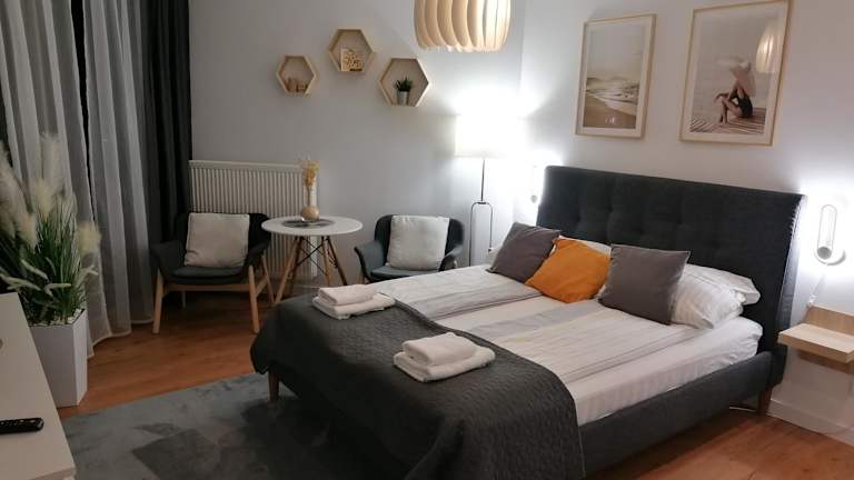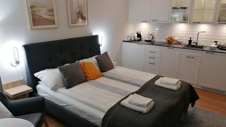PINEA Apartament z widokiem na morze z basenem i SPA przy plaży bietet Übernachtungsmöglichkeiten direkt am Strand. Die Ferienwohnung verfügt über einen Balkon sowie einen Garten, ein Restaurant und eine Bar. WLAN ist kostenlos verfügbar.