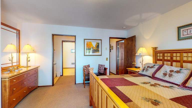 Das Pinecone Cabin bietet 5 geräumige Schlafzimmer und 4 Badezimmer, die Ihnen den Komfort und die Privatsphäre bieten, die Sie während Ihres Aufenthalts benötigen. Die Zimmer sind mit komfortablen Betten, Bettwäsche und Handtüchern ausgestattet. Das Ferienhaus verfügt außerdem über einen gemütlichen Essbereich, in dem Sie Ihre Mahlzeiten genießen können, sowie eine voll ausgestattete Küche, in der Sie Ihre eigenen Mahlzeiten zubereiten können. Der Balkon bietet einen wunderschönen Meerblick, den Sie bei einem Glas Wein oder einer Tasse Kaffee genießen können.