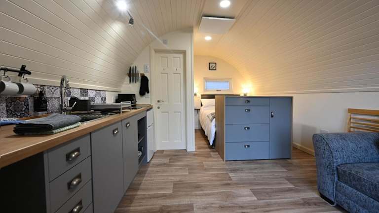 Das Ferienhaus in der Pinemarten Lodge verfügt über ein gemütliches Wohnzimmer mit einem Fernseher und eine voll ausgestattete Küche mit einem Kühlschrank. Das 1-Schlafzimmer-Ferienhaus bietet ausreichend Platz für eine angenehme Unterkunft. Handtücher und Bettwäsche werden gestellt, um Ihnen den Aufenthalt so bequem wie möglich zu machen.