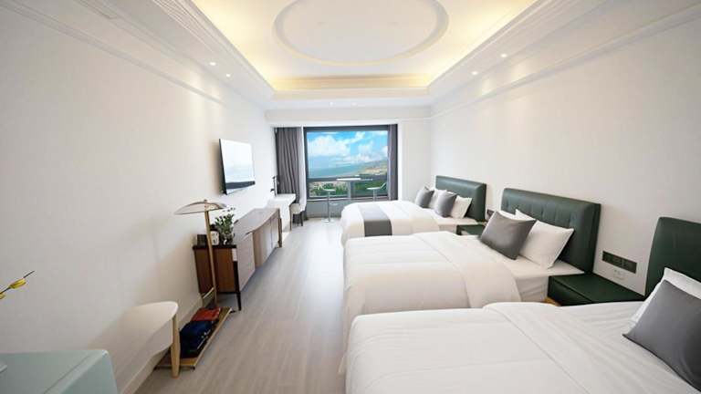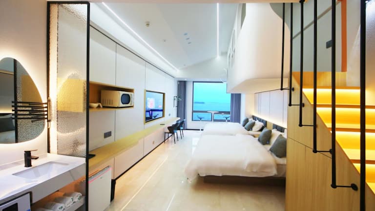 Das PingTan YuCheng Seaview Blue Smart Hotel in Pingtan ist eine ideale Wahl für Reisende, die einen erholsamen und komfortablen Aufenthalt mit Meerblick suchen. Mit kostenfreiem WLAN und einer voll ausgestatteten Küche bietet die klimatisierte Unterkunft alles, was Sie für einen angenehmen Aufenthalt benötigen. Die Lage bietet auch eine Vielzahl von Freizeitaktivitäten wie Windsurfen, Angeln und Radfahren. Ein Wasserpark auf dem Gelände sorgt für zusätzlichen Spaß. Der internationale Flughafen Fuzhou Changle ist nur 70 km entfernt, was die Anreise zum Hotel bequem macht.