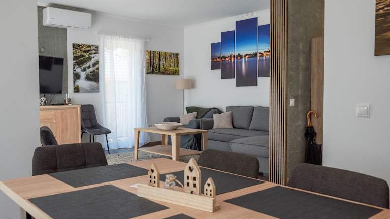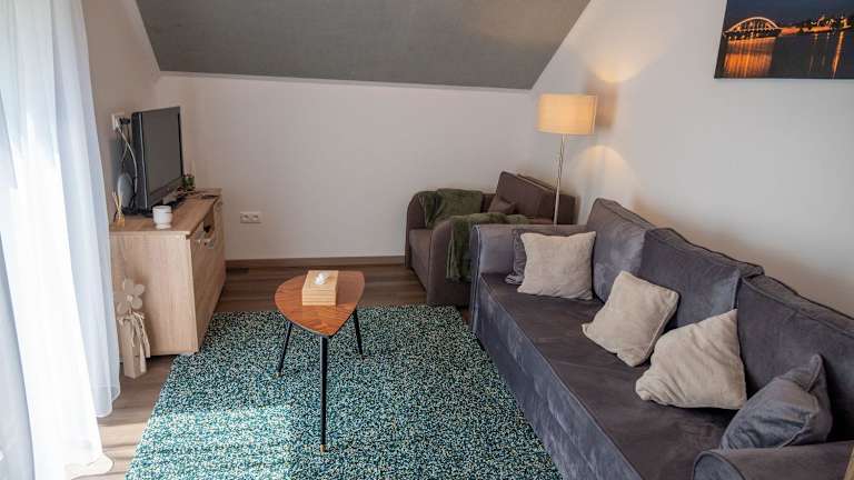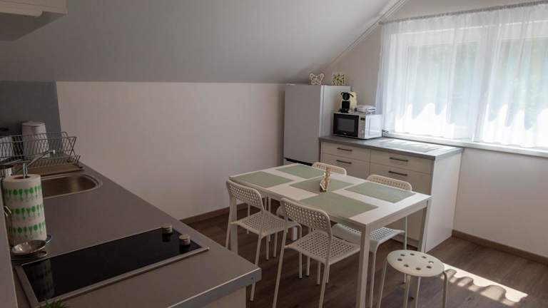 Die Ferienwohnung besteht aus einem Schlafzimmer, einem Wohnzimmer und einer voll ausgestatteten Küche, die mit Kühlschrank und Kaffeemaschine ausgestattet ist. Das Badezimmer verfügt über eine Dusche und einen Haartrockner. Handtücher und Bettwäsche werden bereitgestellt.