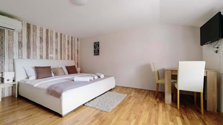 Die klimatisierten Zimmer in der Unterkunft Piranika sind mit einem Kleiderschrank, einem Schreibtisch und einem Flachbild-TV ausgestattet. Jedes Zimmer verfügt über ein eigenes Badezimmer sowie über Bettwäsche und Handtücher. Zudem gibt es in den Gästen Zimmern einen Kühlschrank.