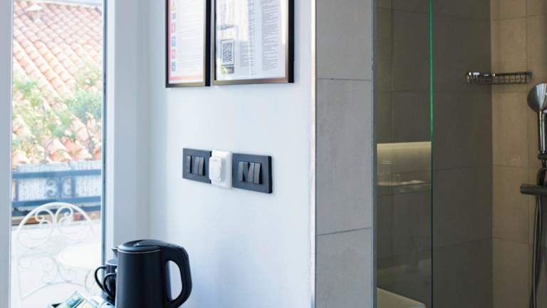 Jedes Zimmer der Unterkunft ist ausgestattet mit Klimaanlage, Kleiderschrank, einer Terrasse mit Stadtblick, eigenem Badezimmer, Flachbild-TV, Bettwäsche, Handtüchern und Kühlschrank.