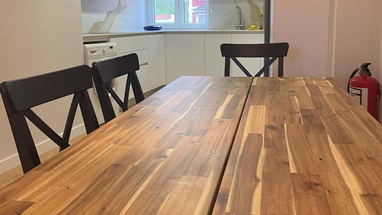 Die Ferienwohnung umfasst drei Schlafzimmer und ein Wohnzimmer. Zur Ausstattung gehören ein Fernseher und eine voll ausgestattete Küche. Zudem gibt es zwei Badezimmer.